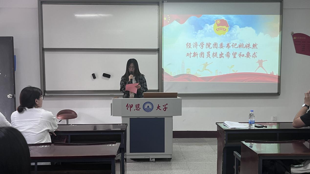 为加强我院共青团队伍建设,贯彻社会主义核心价值观,增强青少年进取意识,迎接新的一批团员入团,yl23411集团团委于2024年5月13日下午在仰恩楼举行了新团员入团仪式,由校团委唐成老师,yl23411集团团委书记姚姝然老师,以及经济系学生第一党支部书记武培汾老师作为教师代表出席本次入团仪式。