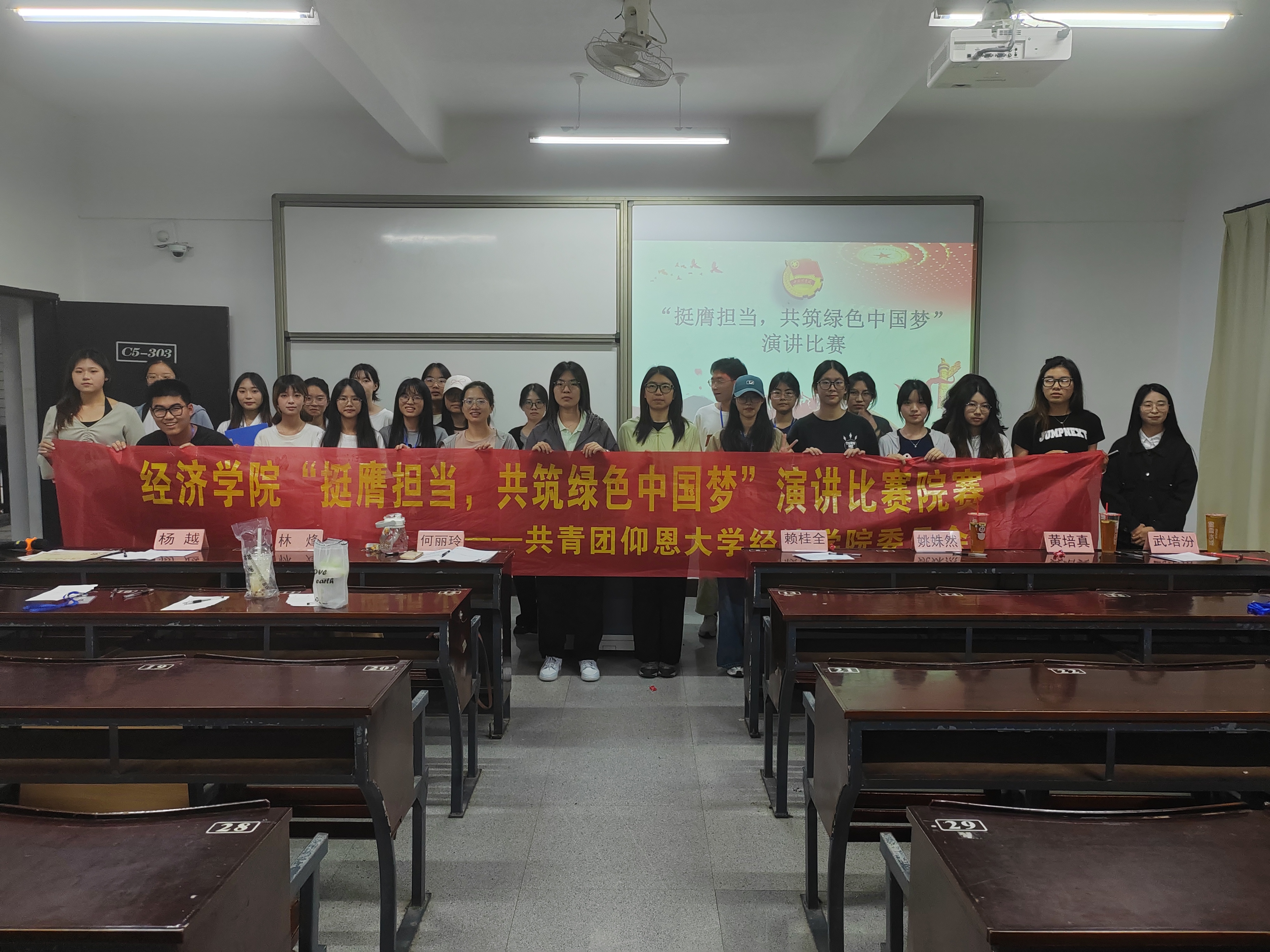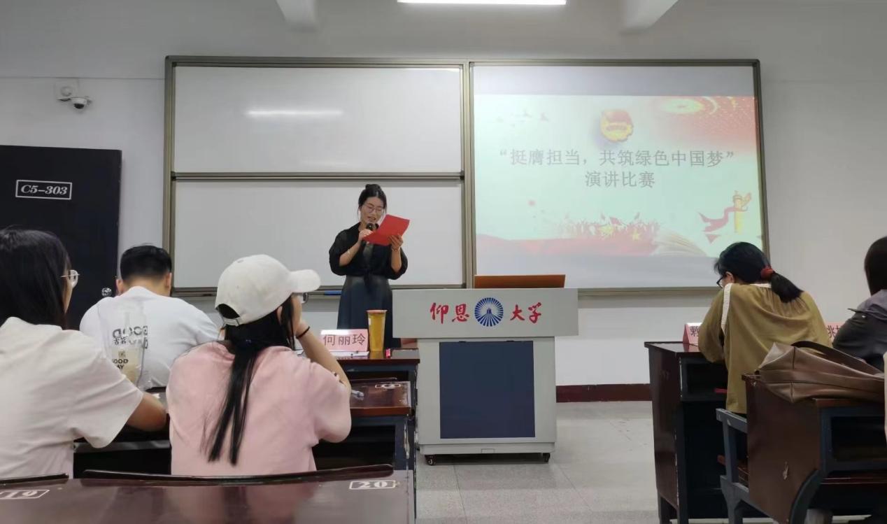 为了响应中国绿色发展理念,号召同学们共建绿色中国梦。2024年5月16日晚上19: 30,yl23411集团团委在仰恩楼C1-303开展“挺鹰担当,共筑绿色中国梦”演讲比赛。由yl23411集团辅导员老师作为评委出席本次比赛,部分经院学子到场观看。