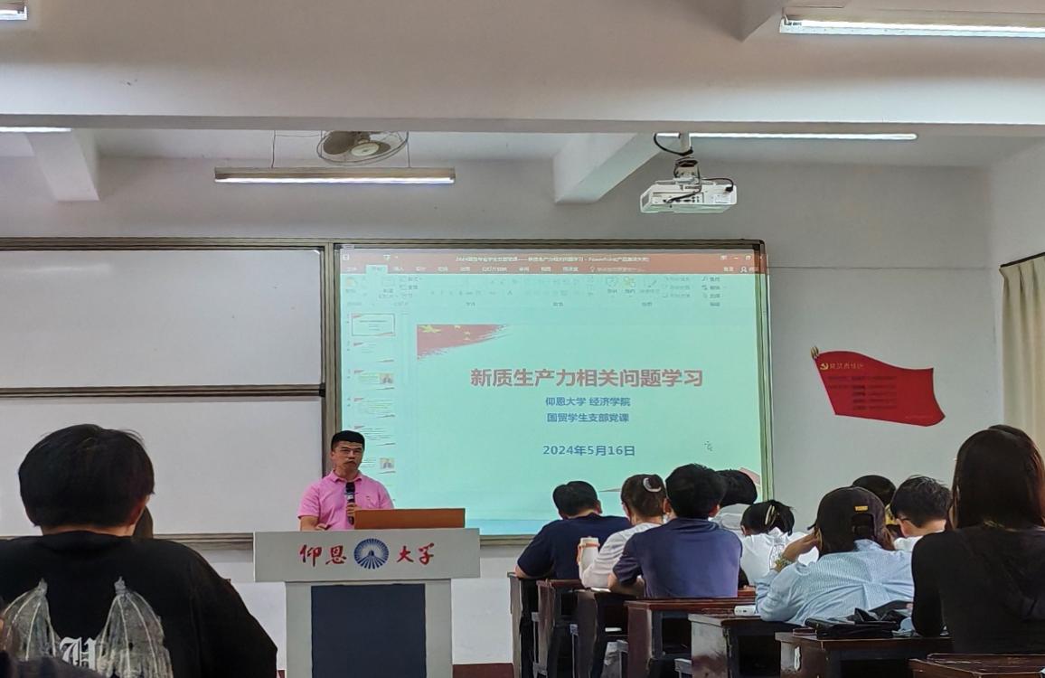 为深入贯彻落实习近平总书记关于加快新质生产力的重要指示精神,经贸系学生第一党支部于5月16日下午16:30,在仰恩楼A3-103组织召开“目标与挑战——关于‘新质生产力’相关问题学习”主题党课。支部党员、积极分子参加本次活动。