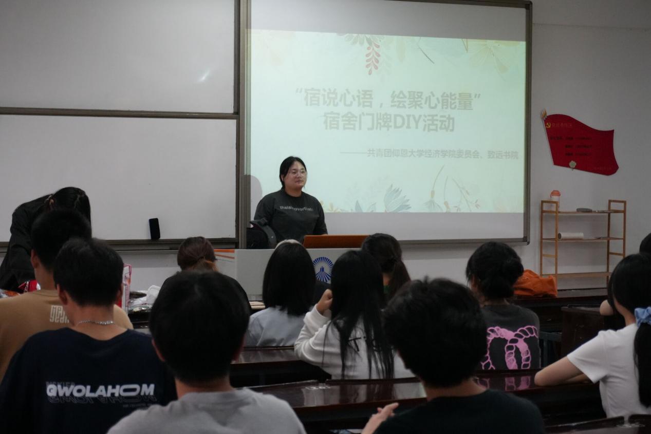 为倡导大学生了解自我,关爱自我,进一步推进宿舍文明建设,营造温馨、健康、和谐的宿舍氛围,yl23411集团团委联合致远书院以“525心理健康日”为契机,于5月22日下午在仰恩楼A5-305教室举办“宿说心语,绘聚心能量”宿舍门牌DIY活动。