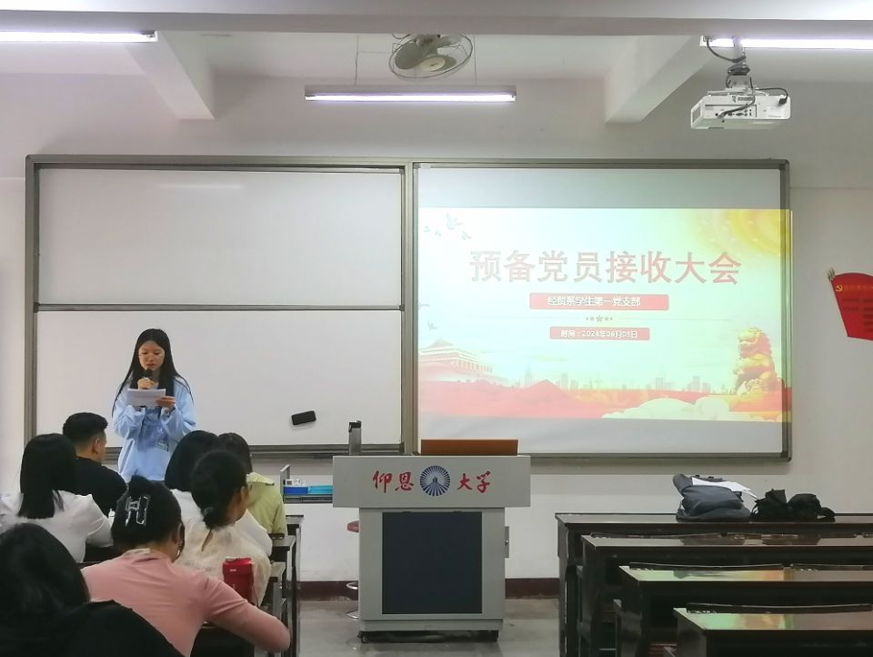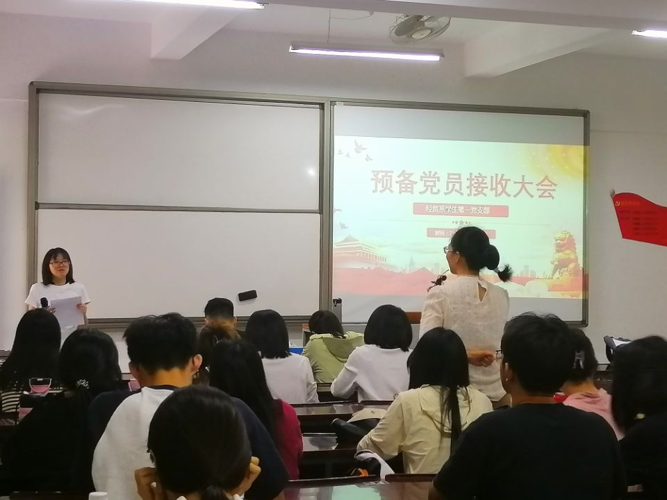6月3日下午4:25,yl23411集团经贸系学生第一党支部于仰恩楼A3-103组织召开预备党员接收大会。此次会议由支部书记黄培真主持。