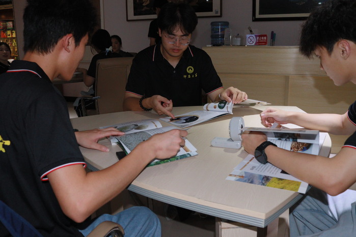 图2 实践队成员们在多功能厅自主阅读学习食用菌的辨别方法
