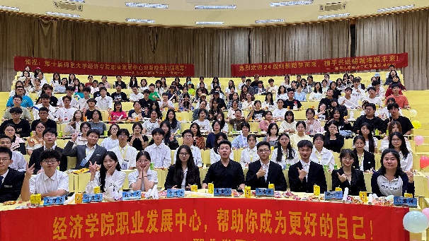 活动伊始,主持人介绍了本次活动的目的,并热烈欢迎2024级新生干事的加入。活动过程中,新老成员带来了相声,歌曲等节目,展现了青春活力。现场还穿插有趣的互动游戏以及抽奖活动,提升了到场人员的参与感,让欢乐洒满每一个角落。期间,职业发展中心还为每个到场的新干事准备了多样的零食与饮料,让其不仅能感受热情的气氛,还能体会到职业发展中心满满的温馨。