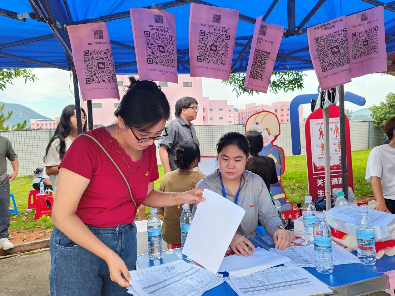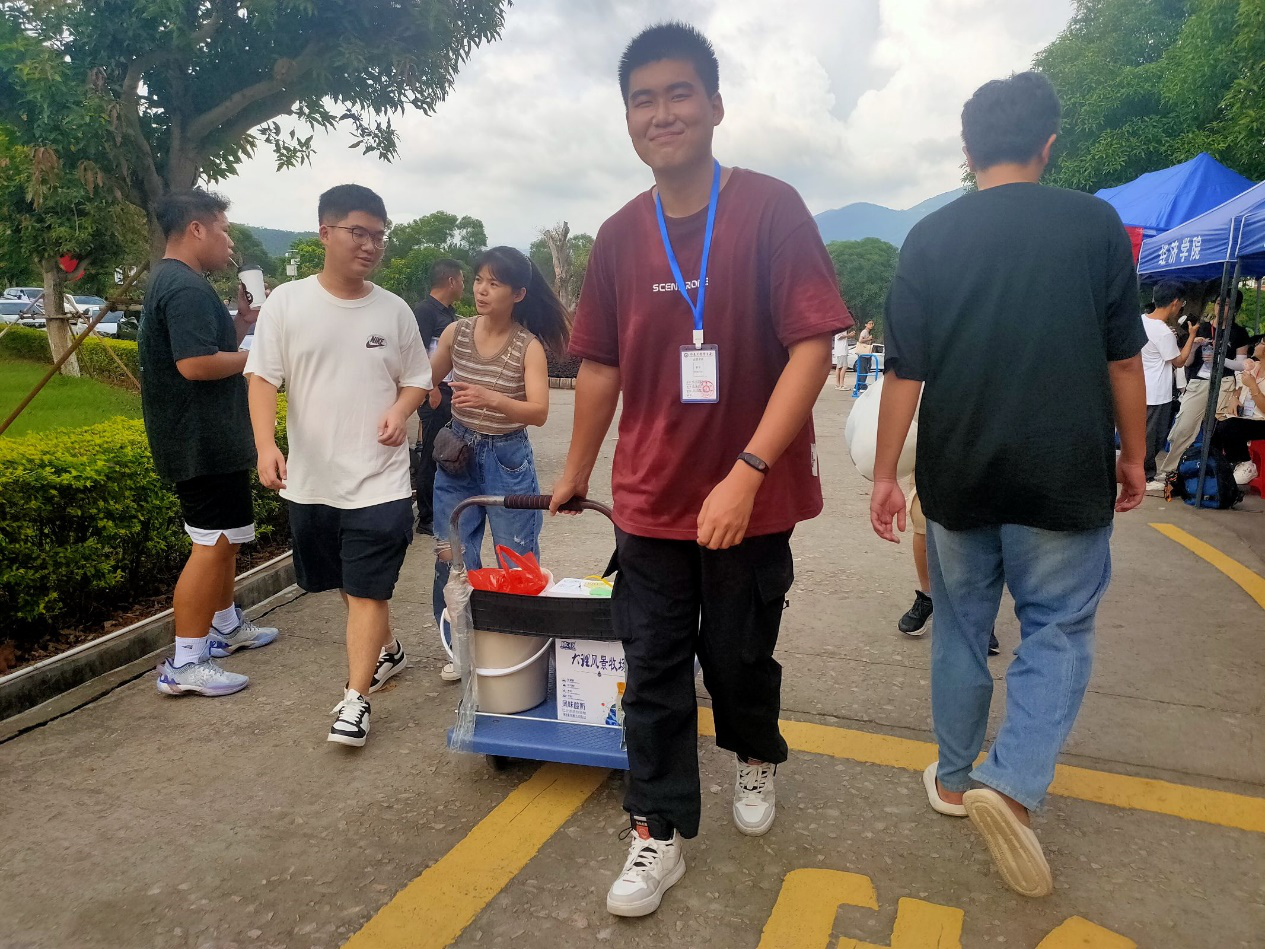 活动当天,党员志愿者们早早来到致远书院、宏船书院,身着统一的红色志愿者服装,热情迎接新生的到来。在新生宿舍区域,志愿者们也热情帮助新生搬运行李,耐心引导他们完成注册手续,面对新生们对校园环境和学习生活的种种疑问,党员们凭借自己的经验与了解,一一给予详细解答,从教学楼的位置到图书馆的开放时间,从社团活动的介绍到专业学习的建议,事无巨细,为新生们提供了全面的入学指引。在志愿服务过程中,党员志愿者们不仅注重解决新生的实际问题,更是传递了积极向上的精神风貌和校园文化。他们以亲切的态度和贴心的服务,让新生们在初入校园时便感受到了学校大家庭的温暖与关怀,增强了新生们对学校的归属感和认同感。一位新生说:“刚到学校的时候还有些紧张,但是学长学姐们的热情帮助让我一下放松了,他们的耐心解答也让我对大学生活有了更清晰的了解,真的特别感谢他们。”