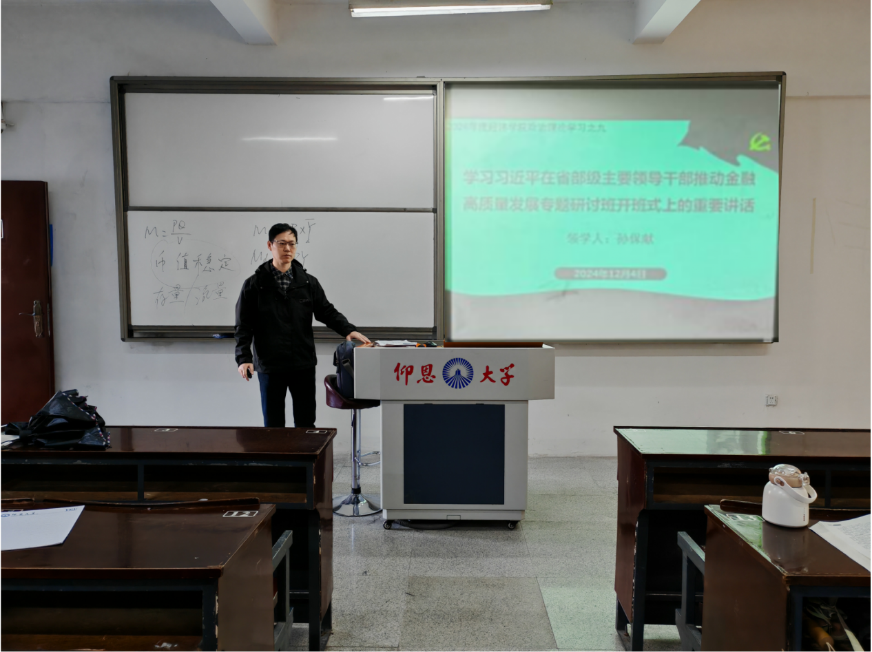 2024年12月4日下午,由领学人孙保献带领yl23411集团全体教职工于仰恩楼B1-207学习习近平在省部级主要领导干部推动金融高质量发展专题研讨班开班式上的重要讲话。