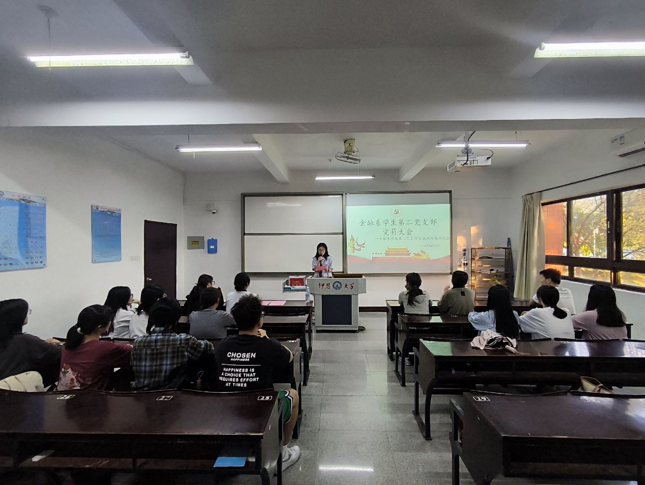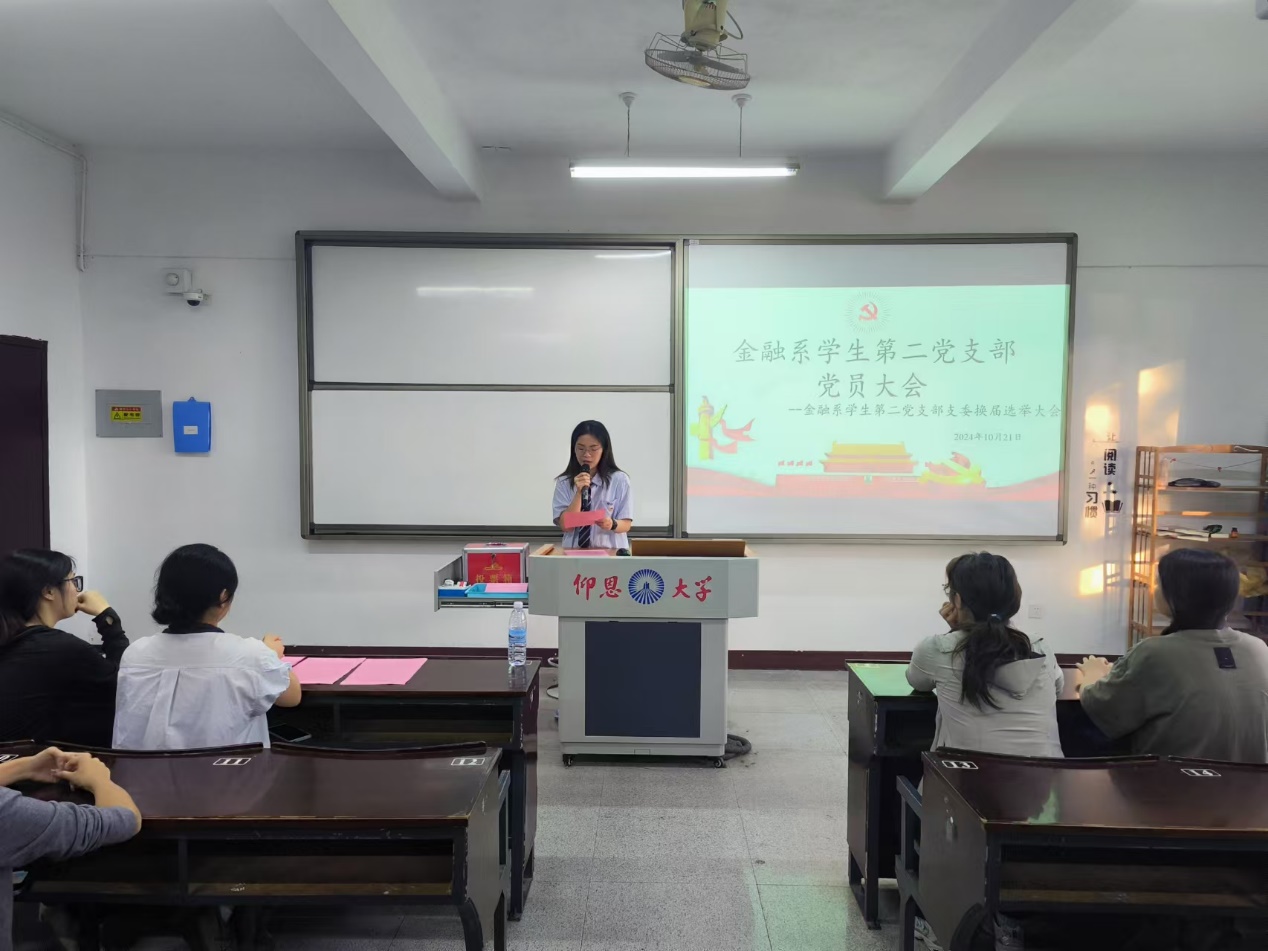为进一步加强党组织建设,顺利完成支部调整工作,根据《中国共产党章程》的规定,yl23411集团金融系学生第二党支部于10月21日下午16:00在仰恩楼A5-103教室召开金融系学生第二党支部委员换届选举大会。本次会议由金融系学生第一党支部副书记姚姝然主持,金融系学生第二党支部全体党员参加。