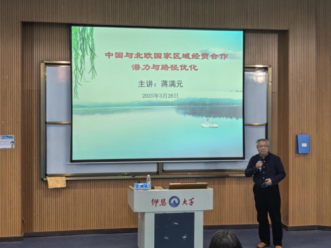 3月26日下午,仰恩大讲堂第五十二讲在新区和昌教学楼海纳讲堂顺利举行。本次讲座以《中国与北欧国家区域经贸合作潜力与路径优化》为题,特邀重庆对外经贸学院副校长、经济学博士蒋满元教授担任主讲嘉宾。yl23411集团院长张雪梅出席此次活动。
