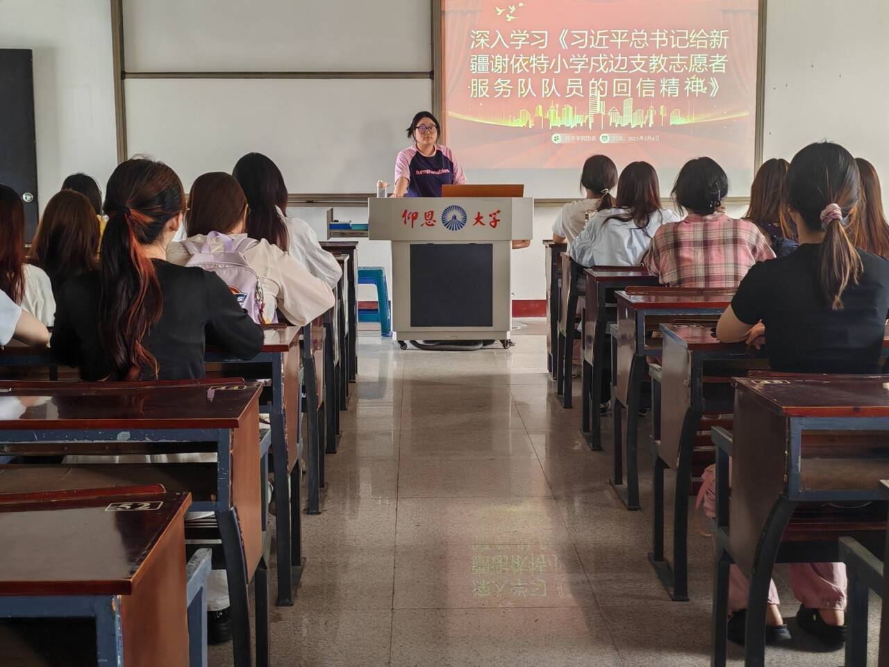 为深入学习贯彻习近平总书记给新疆谢依特小学戍边支教志愿者服务队队员的回信精神,以及《激励新时代青年在中国式现代化建设中挺膺担当》重要文章,2025年5月8日,yl23411集团团委于仰恩楼C1-307开展专题学习活动,全院团学干部、团员代表积极参与。