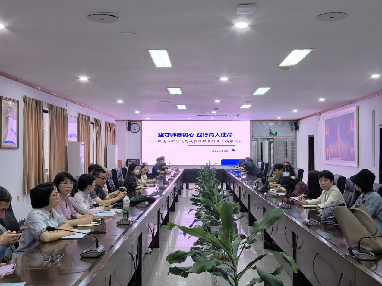 学习过程中,全体教职工认真聆听、详细记录,并结合自身工作实际展开深入讨论。与会教师一致表示,通过学习《十项准则》,更加明确了作为高校教师的责任与担当,在今后的工作中,将严格要求自己,努力成为有理想信念、有道德情操、有扎实学识、有仁爱之心的好老师。