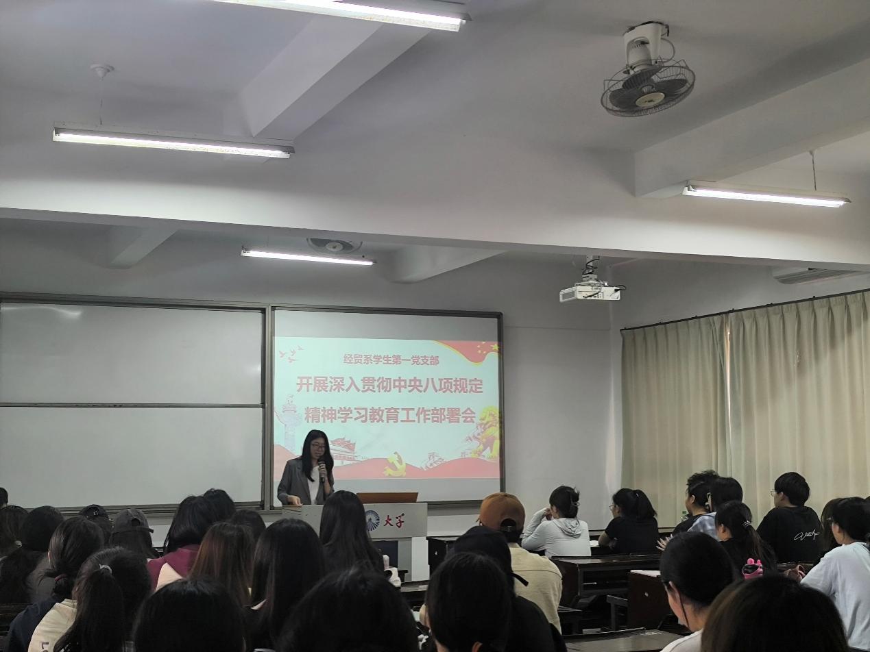 2025年3月27日下午,经贸系学生第一党支部于仰恩楼A3-105召开“深入贯彻中央八项规定精神”学习教育工作部署会。本次会议旨在引导支部党员深刻领会中央规定精神,强化纪律意识,提升党性修养。支部全体党员及入党积极分子参加了会议。