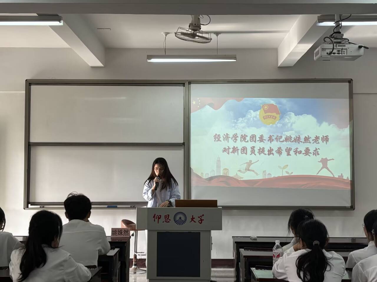 为加强我院共青团队伍建设,贯彻社会主义核心价值观,增强青少年进取意识,迎接新的一批团员入团,yl23411集团团委于2025年5月26日下午在仰恩楼举行了新团员入团仪式,yl23411集团团委书记姚姝然老师代表出席本次入团仪式。
