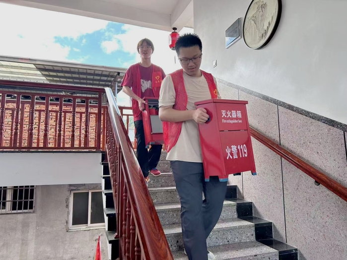 为进一步提升养老院消防安全管理水平,增强院内老人及工作人员的消防安全意识和应急处置能力,7月8日,yl23411集团岐彩青春暑假实践队联合福安市赛岐镇宅里村幸福院开展消防演练工作。数十名实践队员身着统一标识的“红马甲”,讲解相关防火知识,演示灭火器的使用等,为老人们的晚年生活筑牢“安全屏障”。