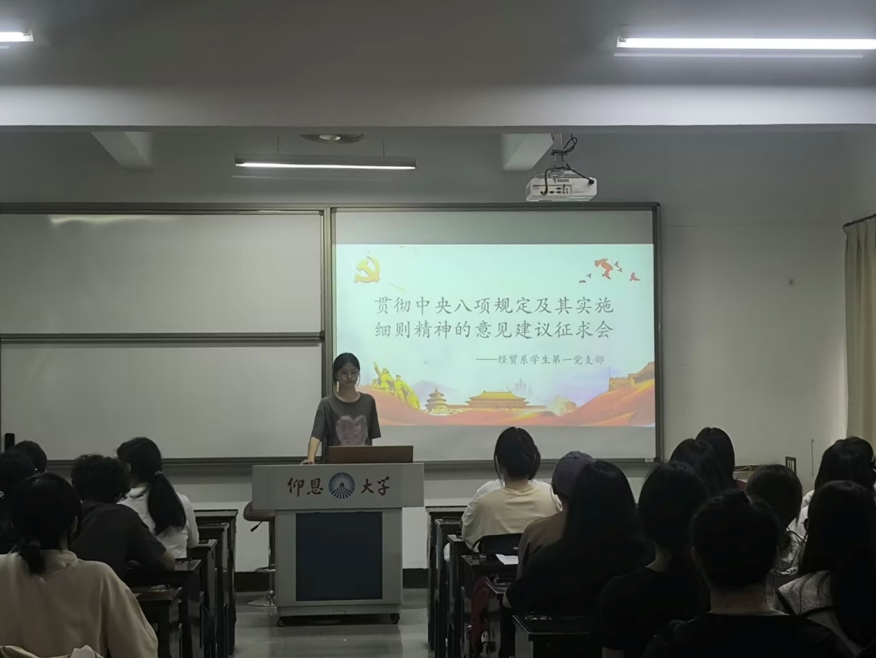5月15日下午,经贸系学生第一党支部于仰恩楼A5-105组织开展“深入贯彻中央八项规定精神学习教育”意见征集研讨会。