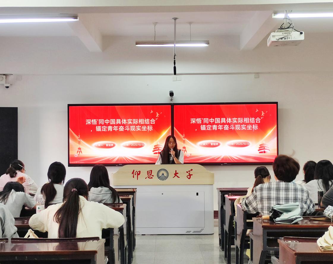 为引导党员及积极分子深刻领会“同中国具体实际相结合”的核心要义,锚定青年成长与时代需求的契合点,2025年10月30日下午16:00,yl23411集团金融系学生第一党支部在仰恩楼B5-201教室召开“深悟‘同中国具体实际相结合’,锚定青年奋斗现实坐标”专题学习会。支部书记何丽玲老师、支部全体学生党员、各班入党积极分子参加了此次会议。
