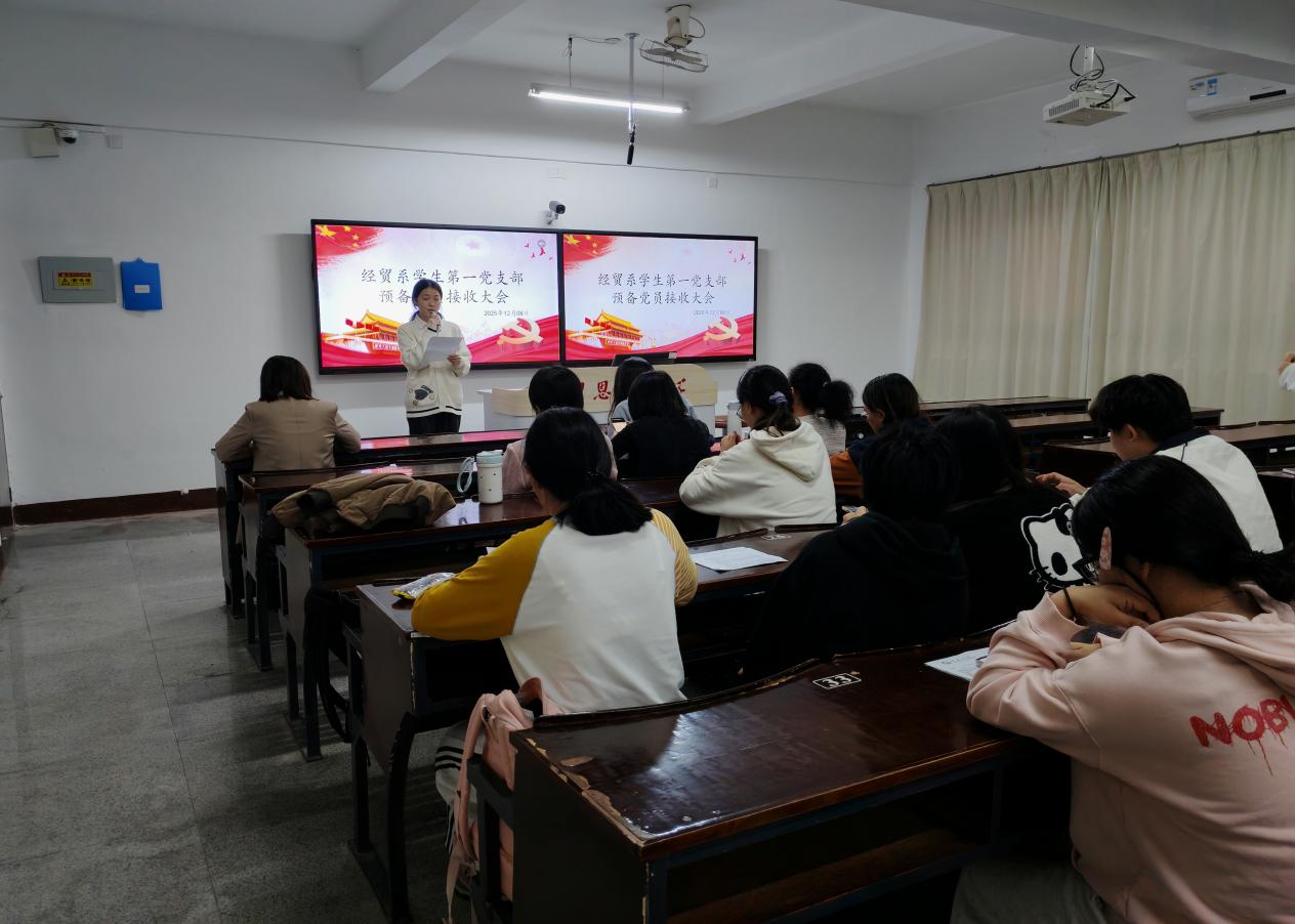 128日下午3:45,经贸系学生第一党支部于仰恩楼A2-105组织召开预备党员接收大会本次会议由支部书记黄培真主持召开。