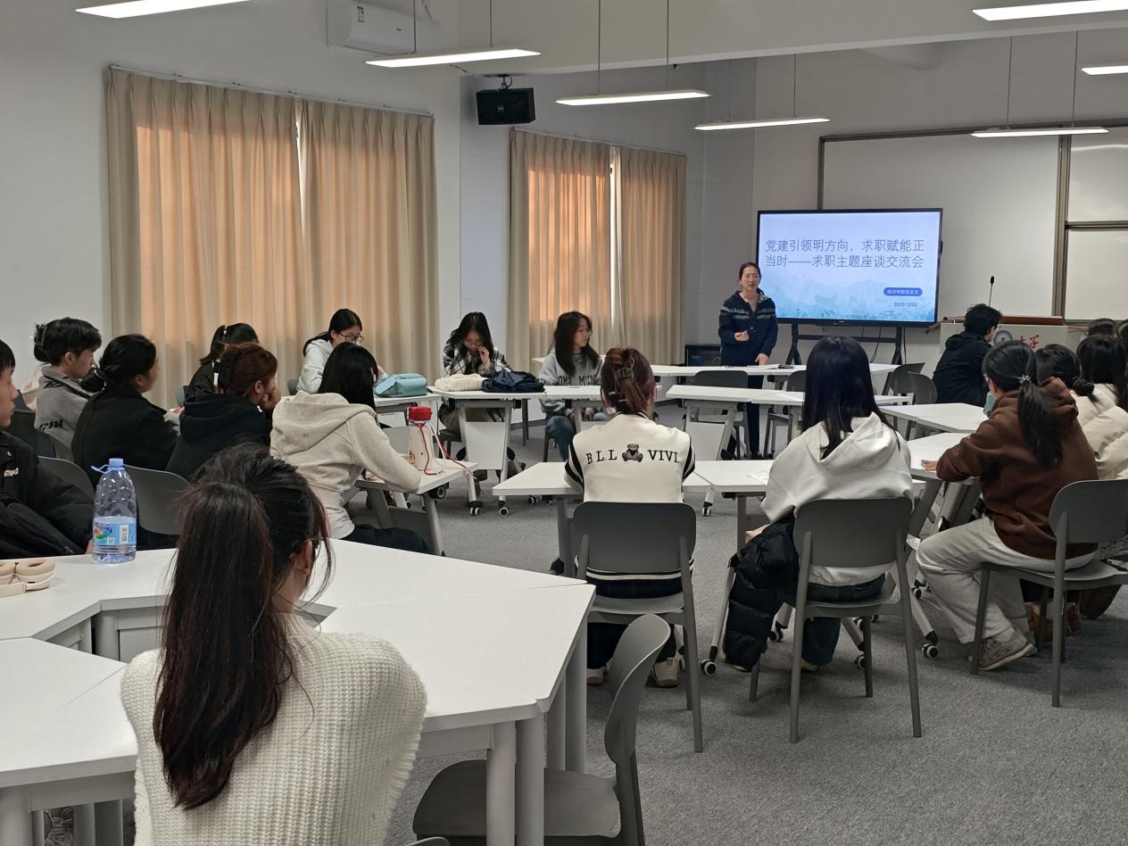 为推动党建引领与就业服务深度融合,解决毕业班同学求职困惑,帮助明晰职业发展路径,12月2日下午16:00,yl23411集团党总支联合学生二支部、致远书院和宏船书院,在普照楼130组织开展“党建引领明方向,求职赋能正当时”求职主题座谈交流会,主要是求职心路历程与备考准备。活动由yl23411集团党总支组织员何丽玲老师现场指导。