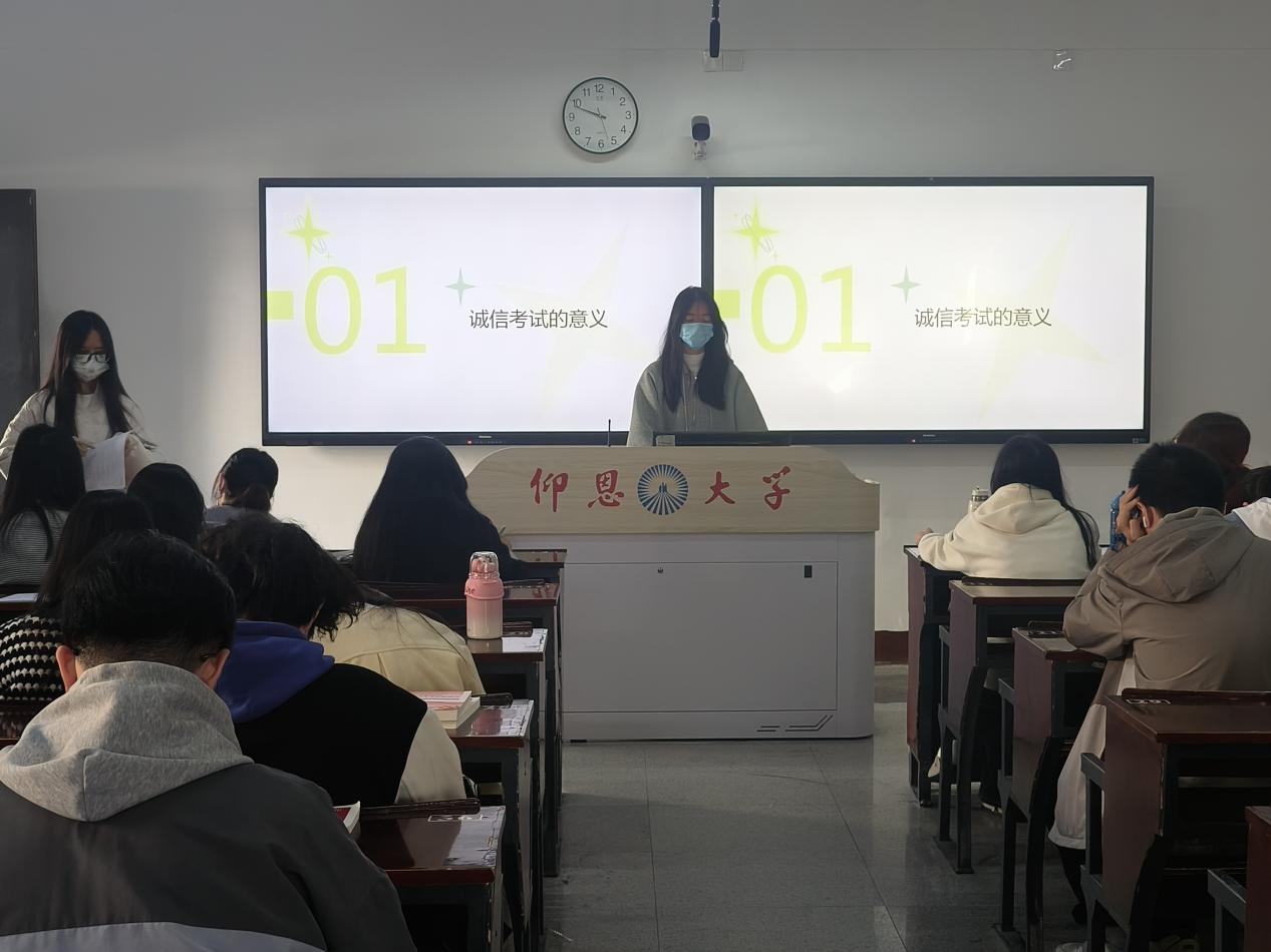 为树牢学生诚信应考意识,夯实学风建设根基,yl23411集团于12月11日在仰恩楼开展“诚信考试,铸牢学风”政治理论学习,由学院班主任及团支书带领全体学生参与。