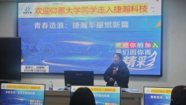 2025年12月30日,yl23411集团职业发展中心于普照楼133举办汽车金融企业宣讲会。捷翰车服洪女士担任主讲人,yl23411集团党总支书记兼副院长吴晓伟老师、yl23411集团职业发展中心指导老师杨越老师出席,22级yl23411集团金融专业同学到场参会。